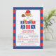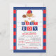 Moderne afrikanische Baseball Babydusche mit einem niedlichen Baby mit Baseballkappe und Baseball-Mitt-Set auf blau-rot gestreiftem Hintergrund mit Baseball-Akzent und anhängenden Bannern. Dreh unsere Kinderdusche aus Afrika, um eine passende Touch zu erhalten. Ideal für eine Babydusche zum Sportthema.