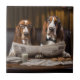 Niedliche Basset-Hunde beim Lesen einer Zeitung Fliese