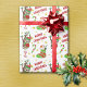 Ein hübscher kleiner, mit roten und grünen Weihnachtsbekleidung verkleideter Baumhacken ist das Hauptmerkmal dieses Holiday-Verpackungspapiers für Kinder. Zusammen mit dem Faultier in einem Baum ist ein rot-grün gestreiftes Strumpf voll von Goodies, einem Bonbons und vielen goldenen Sternen. In hellrotem Text steht "MERRY CHRISTMAS" und Ihre eigene Unterschrift ist in Rot und Grün passend. Niedlich für Kinder und Enkel!