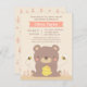 Eine Babydusche mit einem niedlichen Waldbär, der sich in einem Honigbienenstock hält, in dem sich die Bienen umherschwänzen. Dekorative Blätter im Hintergrund. Geschlechtsneutrale Farbpalette von Braun, Gelb und Orangen, die für Mütter geeignet ist, die auf Mädchen und Jungen warten! Personalisieren Sie Ihre Babydusche Details.