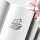 Diese "From the Library Of" Gummi Briefmarke beinhaltet eine Line Art Katze, die auf einem Buch mit einem individuelle Name liegt.
