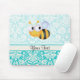 Niedliche Biene; Aquamarines Damast-Muster Mousepad