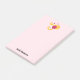 Große Post-it-Noten mit einem süßen Bild einer rosa und weiß gestreiften Hummel. Ein Stück gelbe Wabe dahinter. Ein Brief, der mit einem Herz versiegelt ist, und eine Gruppe schwimmender Herzen sind ebenfalls Teil des Designs. Personalisieren mit einem Namen.