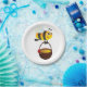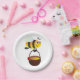Niedliche Biene trägt Honigtopf mit Blume Pappteller