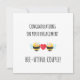 Diese niedliche Bienen-Liebe mit lustiger Verlobung-Karte mit einem niedlichen Bienenthema ist ideal, um Ihre wärmsten Wünsche an einen verlobten Verwandten oder Freund zu senden. Mit einer süßen Liebe und herzlichen Glückwünschen an die Verlobung, verkörpert diese Karte Ihre herzlichen Glückwunsch auf ihrem Weg zu ihrem Hochzeitstag. Die spielerischen Zitate der Verlobung und das inspirierte Design der Bienen machen es zu einer angenehmen Wahl, ihre Liebe zu feiern. Auf der Vorderseite der Karte, es herzlich Staaten, "Herzlichen Glückwunsch zu Ihrer Verlobung. Schönes Paar." Auf der Rückseite fügt es spielerisch hinzu: "Ich bin voller Freude über deine Verlobung!" Sie können diese Karte auch für Ihr verlobtes Familienmitglied oder Bekanntes personalisieren, was sie besonders aussagekräftig macht. Diese Karte ist die perfekte Mischung aus herzlichen Glückwünschen und einer Touch Whimsy, die es zu einer wunderbaren Wahl für die Feier ihres besonderen Augenblicks macht.