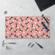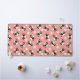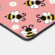Nahtloses Muster mit niedlichen, kleinen, fliegenden Bienen und weißgetönten Blume auf rosa Untergrund.