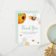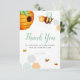 Niedliche Babydusche danke Karte mit Bienenthema. Sehr niedlich in Orangen-, Grautönen und Grüntönen. Illustriert und entworfen von Patricia Alvarez.
