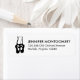 Adressetiketten mit einer schwarzen Abbildung eines Balletttänzerhausschuhs und ihrer Unterschenkel, die transparent sind und die Farbe des Hintergrunds durch die Farbe des Hintergrundes zeigen. Ballerina ist auf ihren Zehen stehend, en pointe.
