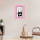 Ein Poster mit einer schwarzen Abbildung einer Balletttänzerin Hausschuhen und ihren Unterschenkeln, die transparent sind und die Farbe des Hintergrunds durch die Farbe des Hintergrundes zeigen. Ballerina ist auf ihren Zehen stehend, en pointe. Text sagt: Ballett Mädchen. Text kann einem Namen oder einem anderen Text Ihrer Wahl personalisiert werden, wenn Sie möchten. Hintergrund ist ein Muster aus weißen Polka Punkte auf rosa.
