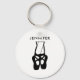 Personalisierter Schlüsselanhänger mit einer schwarzen Abbildung einer Balletttänzerin-Hausschuhe und ihren Unterschenkeln, die transparent sind und die Hintergrundfarbe durchleuchten lassen. Ballerina ist auf ihren Zehen stehend, en pointe.