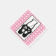 Papierservietten mit einer schwarzen Abbildung einer Balletttänzerin Hausschuhe und ihren Unterschenkeln, die transparent sind und die Farbe des Gegenstands durch zeigen. Ballerina ist auf ihren Zehen stehend, en pointe. Hintergrund ist ein Muster aus weißen Polka Punkte auf rosa.