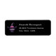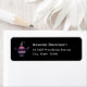 Adressetiketten mit einer lustigen Halloween-Illustration für Katzenliebhaber. Eine mit Augen schwarze Katze mit einem großen schwarzen Hexenhut mit einem purpurpurfarbigen rosa Gürtel um den Rand.