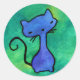 Niedliche blaue Kätzchen auf grünen Hintergrund Au Runder Aufkleber