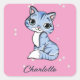 Niedliche blaue Katze auf rosa individuelle Name Quadratischer Aufkleber