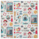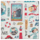 Ein niedlicher, blauer und roter Stoff mit einem Kreuzfahrtschiff, anderen Strandartikeln und niedlichen Leuten