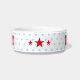 Erstellen Sie Ihre eigenen, personalisierten, fetten Weihnachten rot rustikalen Vintagen Western Drehbuch / Typografie individuelle Name vorne und hinten, mit drei Sternen in der Mitte und hellblau Sterne im Hintergrund, Keramik, Haustier Katze Hündchen Hündchen Welpen Essenschale. Geben Sie einfach den Namen Ihres Haustieres / Ihren Text ein, um ihn anzupassen. Ideal zum Geburtstag, Weihnachten, Ferien, neue Jahre und mehr, für Haustier Hund / Katze Besitzer, Freunde und Familie.