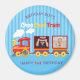 Cute Blue Stripes Pattern Toy Train Boys Birthday Foto & Name Baby Boy / For Kids design This design has a colorful kid's toy train with two foto frame with a blue stripes background. This design is suitable for boys birthday party, new eltern and Christmas gift for kids.