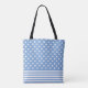 Niedliche, moderne und trendige Streifen und Punktdesign. Perfekt zum Shoppen :) Die Hauptfarben sind blau und weiß.
