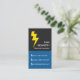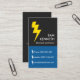 Auf der Rückseite, in einem weißen Deckel, oben ist ein gelbes Glühbirnen-Logo des Elektrikers, gefolgt von Ihrem prestigeträchtigen Namen, Kontaktdaten und Slogan-Slogan-Slogan-Slogan-Slogan-Slogan-Slogan, um Ihre Dienste zu werben.