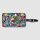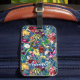 Niedliche Blume Blätter blaues Monogramm-Muster Gepäckanhänger