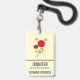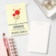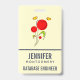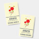 Namensschild mit einem charmanten zeichn von mehreren skurrilen roten Blume mit fetten Herzen an einem grünen Stiel. 2 gelbe Schmetterlinge schweben in der Nähe. Mit einer schwarzen Kontur gezeichnet. Whimsisches und niedliches Design.