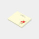 Die Post-it-Noten mit einem charmanten zeichn von mehreren skurrilen roten Blume mit fetten Herzen an einem grünen Stiel. 2 gelbe Schmetterlinge schweben in der Nähe. Mit einer schwarzen Kontur gezeichnet. Whimsisches und niedliches Design. Hellgelbe Hintergrundfarbe. Personalisieren mit einem Namen.