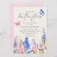 Moderne und elegante rosafarbene Lila Blütendusche und botanische Brautdusche Einladung, Wasserfarbenblüte, die er mir mit Schmetterlingsthemen-Brautdusche einlädt.Niedlich und hübsch, diese Einladung enthält einen floralen, wasserfarbenen Hintergrund mit Schmetterlingen in grauem Farbton, der es weich und dennoch modern macht.