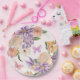 Moderne und elegante rosafarbene Teller aus Lila, floralen und botanischen Brautparty, florale Watercolor, die er mir mit Schmetterlingen thematisierte Tischdekoration.Niedlich und hübsch, diese Papiertafel besticht durch eine Aquarellmalung und blumigen Hintergrund mit Schmetterlingen aus Aquarellfarben mit grauem Farbtext, die es weich, aber modern machen.