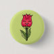 Niedliche Blume-Taste mit Vektorgrafik, die einen Blumencharakter wie eine Tulpe darstellt, sowie eine glücklich lächelnde Rose. Diese lustige Frühlingsillustrierung hat leuchtende rote und grüne Farben.