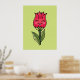 Niedliche Blume-Kinder poster für ein Pflanze-Liebhaber-Mädchen mit einer Vektorgrafik, die einen Blumencharakter wie eine Tulpe darstellt, sowie eine Rose, die glücklich lächelt. Diese lustige Frühlingsillustrierung hat leuchtende rote und grüne Farben.