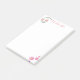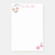 Niedliche weiße Maus und rosa Blume auf weißen Post-it Notes.