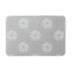 Ein niedliches, weißes Farbmuster auf einem weichen, silbergrauen Hintergrund. Karo mit Duschvorhang und Badetüchern im Daisy-Badezimmer-Dekor