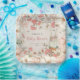 Niedliche Blumendusche. Der Charme des Waldes für den kleinen Duschtisch, mit dem Hasen in Rosa mit Blume auf dem Kopf hinter einer Blumengrenze in Creme und Blüte mit Grün. Sie können den Text ganz einfach auf Ihre eigenen Daten anpassen.