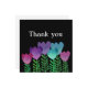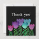 Niedliche und elegante Dankkarte mit rosa, blauen und violetten Blumen und grünen Blätter auf schwarzem Hintergrund. Sie können den Stil des Schriftartes ändern und den Text bearbeiten, indem Sie auf die Schaltfläche Anpassen klicken.