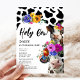 Niedliche Blumenkuh "Heilige Kuh" 1. Geburtstag Party Einladung. Feiern Sie Ihr Kleines, das sich zu eins verwandelt! Das Design zeichnet sich durch einen Kuhdruck-Hintergrund, zwei Kühe mit leuchtenden und kühlen farbigen Aquarellfloralen, einen weißen Bogen mit einer eleganten Vorlage aus, die leicht mit Ihren eigenen Event-Details zu gestalten ist.