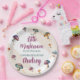 Unser kleiner Pilz ist unterwegs! Niedliche, helle und farbenfrohe Pilze Baby Duschpapier Teller, mit einem eleganten Drehbuch Schriftart.