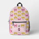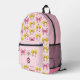 Farbenfrohe und niedliche Mädels bedruckter Rucksack, Schultasche mit bezaubernden Bugstiften und fröhlichen Gängen im Retro-Coquette-Stil in Rosa und Gelb. Personalisieren Sie den Text einfach oder verließ ihn leer. Kate Eden Art