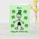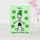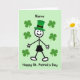Niedlicher Cartoon eines Peitschenjungen lächelt. Die Karte hat einen hellgrünen Hintergrund und ist mit Kleeblättern für einen glücklichen St. Patrick's Day dekoriert! Junge trägt einen irischen Hut. Personalisieren Sie diese Karte einfach, indem Sie den Vorlagentext vorne und innen bearbeiten. Danke, dass du meine Designs gesehen hast!