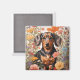 Niedliche braune Dackel und Kosmos-Blume Magnet