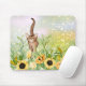 Niedliche braune Katze im Sonnenblumengarten Mouse Mousepad