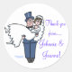 Cartoon Braut & Bräutigam Star auf diesen humorvollen Custom Wedding Danke Round Stickers. Diese personalisierbaren humorvollen Hochzeitsdanken Ihnen Aufkleber verfügen über eine niedliche Cartoon Braut & Bräutigam. Sie können sie ganz einfach personalisieren, indem Sie Ihre Namen in den dafür vorgesehenen Platz eingeben.