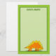 Dieser niedliche Cartoonentwurf hat ein gelbes und orange Stegosaurusdinosaurierbild auf ihm. Der Dinosaurier hat knöchernen Teller entlang seiner Rückseite und Spitzen auf seinem Schwanz.