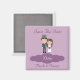 Sweet Bride & Groom Illustration auf einem lila Hintergrund auf einem "Save the Date" Magneten. Bearbeiten Sie den Text, um die Namen der Braut und des Bräutigams und das Hochzeitdatum hinzuzufügen. Der gesamte Text ist individuell anpassbar - viele verschiedene Schriftart und Farben zur Auswahl. Ein lustiger Weg, um Ihre Gäste an Ihren Hochzeitstag zu erinnern. Besuchen Sie bitte meinen Molly Sky Shop für mehr Spaß und niedliche Hochzeitsartikel und viele Produkte für alle - auch für den Familienhund!