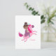 Niedliche Brünette Hair Riding on a Unicorn Postkarte