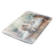 Eine hübsche Aquarellillustrierung eines köstlichen Kätzchens, das in einer rustikalen Holzwanne ein Schaumbad genießt, mit einer ruhigen Kulisse aus Pflanze und sanftem natürlichem Licht, das durch ein Fenster gefiltert wird.