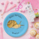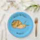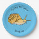 Eine fröhliche gelbe Schnecke gezeichnet in lustigem Cartoon Stil.