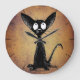 Diese lustige kleine Cartoon Katze ist auf einem Vintagen Hintergrund strukturiert, aus einer Illustration von Paul Stickland und seiner Lieblingskatze zeichnend schwarz. Lädt lustigere kleine schwarze Katzen, Katzenkunst und orientalische Katzen auf StrangeStore.