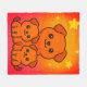 Ein reizendes Design im Stil eines Cartoon, das drei charmante Welpen mit übergroßen Augen, fröhlichen Ausdrücken und rosigen Wangen zeigt. Sie sitzen eng zusammen, vor einem lebendigen Farbverlauf, der von warmen Orangen zu sanftem Rosa übergeht. Gelbe Stars und spielerische Punkte verleihen der Komposition ein magisches, traumhaftes Ambiente, das ihre skurrile und herzliche Anziehungskraft verstärkt