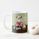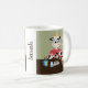 Eine Spaß Ostern-Tasse mit einer Cartoonkuh, die einige Ostereier malt. Personifizieren Sie es mit einem Namen.