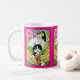 Niedliche Katze in einem Dschungel mit Orchideen, Toucan und einer Herzmaus. Sie können den Stil und die Farbe dieser Tasse sowie die Hintergrundfarbe anpassen, wenn Sie möchten. Es ist hier auf Rosa dargestellt, aber es würde auch in anderen Farben großartig aussehen. Dieses Bild ist auf anderen Produkten in meinem Zazzle-Shop erhältlich. Ein hübsches Geschenk, um Ihren Lieben warm behalten.